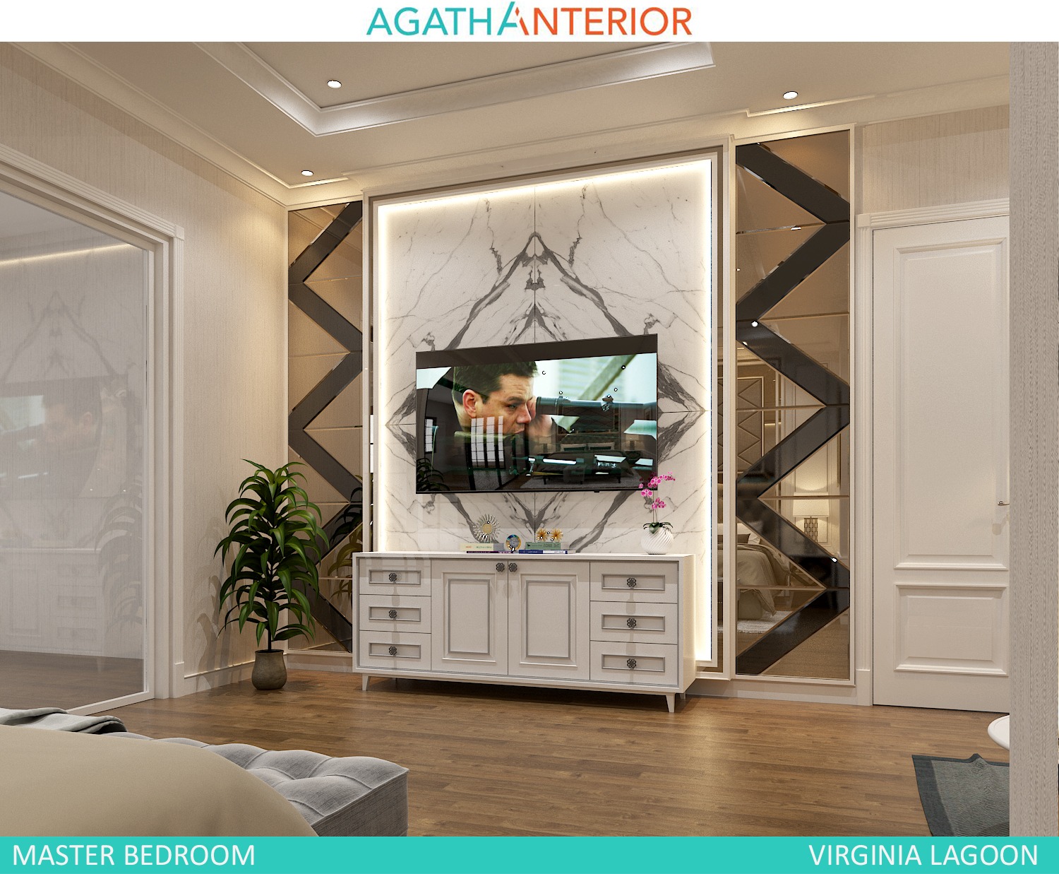 Wall : Wallpaper, Padded, Bronze Mirror